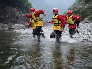 イェイ、イェイ、ひろ、あっこ、よぴよ、まる坊、ごいんちょ、キャン、一休、今日はありがとー。水が少なく岩だらけの吉野川でしたが、チームワークで見事乗り切りました。すばらしい!!合格!!ラフティング後のドライブ、お疲れのようでしたが無事に家に帰れたでしょうか?ラフティングとすぅ~けさんが恋しくなったらいつでも川に帰ってきてくださいよー。